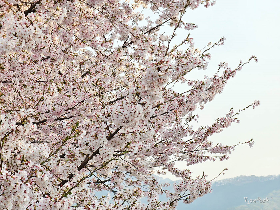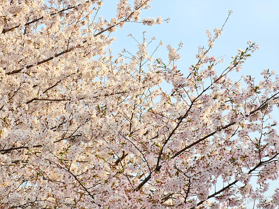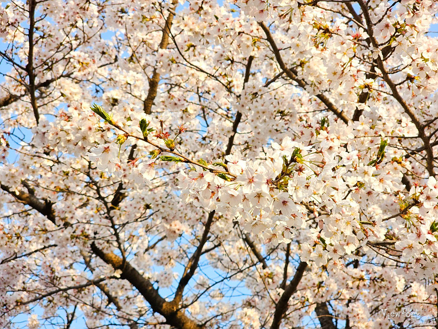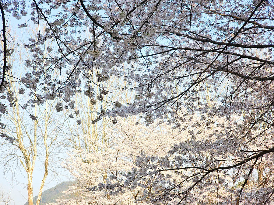 위로는 하얀 벚꽃이 피어있어