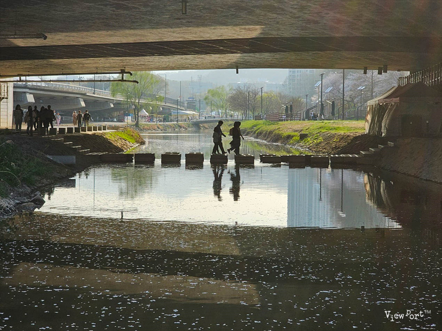 징검다리들이 있는데, 양재천 위로