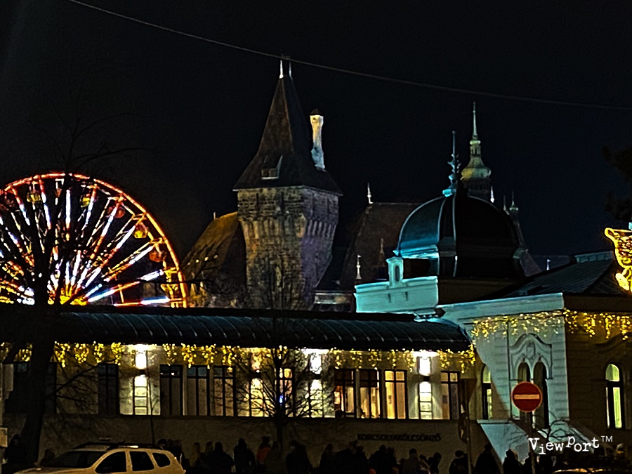 회쇠크 광장 기념탑 뒤로 화려한 조명들과 회전 관람차의 불빛이 비추는 곳이 있는데 여기가 바이다 훈야드성입니다.
