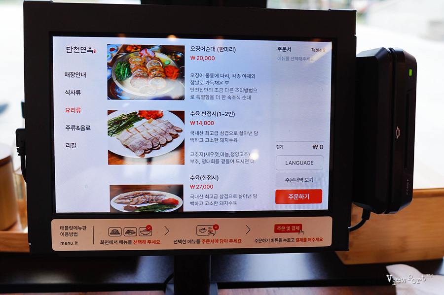 여기도 키오스크로 메뉴를 주문 하면 되는데요, 주문전에 사장님이 오셔서 대략적으로 이 가게의 메뉴를 소개해 주시는데요 명태 회냉면, 물냉면, 단천냉면 중에서 단천 냉면을 강추하십니다.
