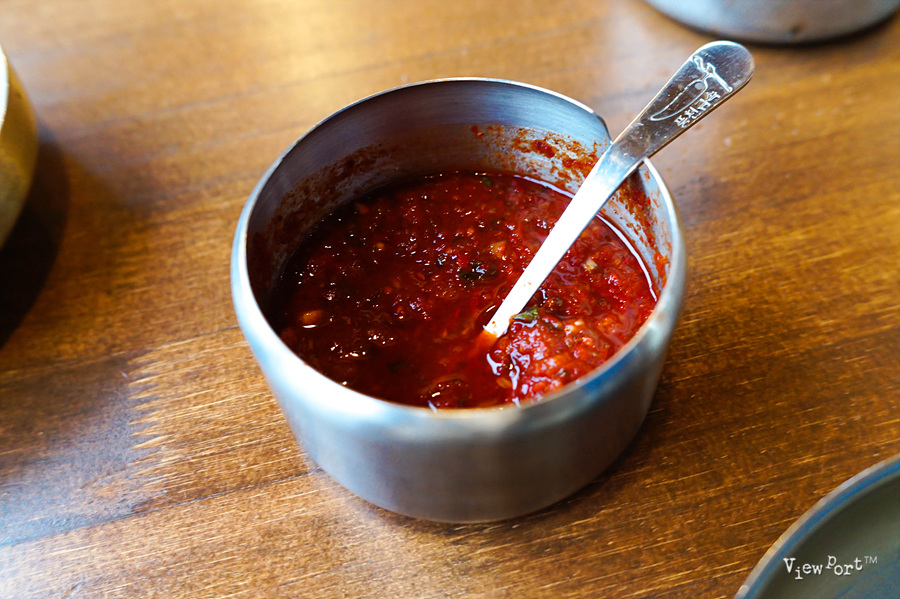 여기에 식탁에 놓여 있는 다대기를 개인의 입맛에 맞게 넣어서 비벼 먹습니다.