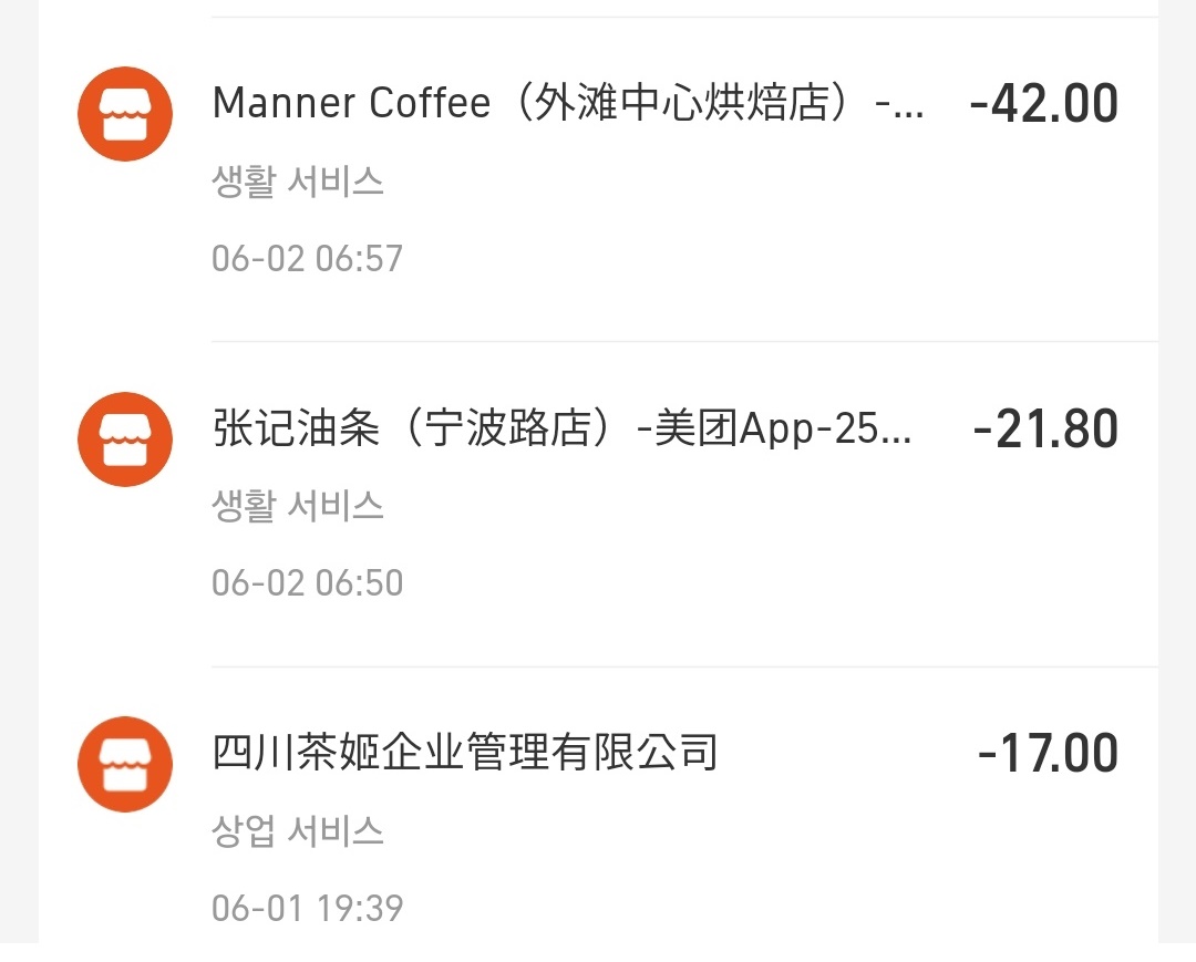 아래 보시면 지하철이 3~4위안, 택시 20위안, 아침 또우장과 셩지엔빠오 옥수수포함 21.8위안에 비해 밀크티 17위안, 커피 2잔 42위안이예요.