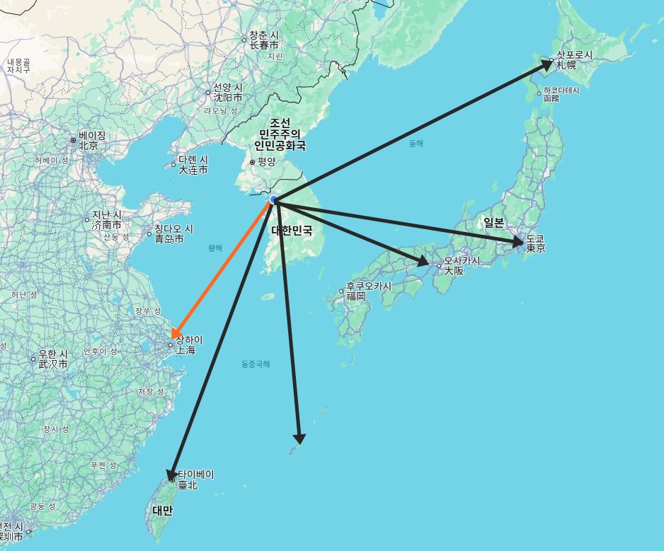 그리고 김포공항과 인천공항에서 출발하는 항공편들이 있기 때문에 비교적 항공편도 편리합니다.