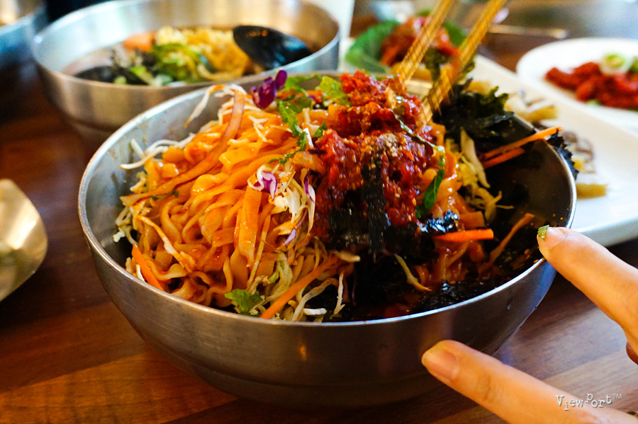 보쌈 다음으로 마음에 들었던 건 비빔칼국수였어요.