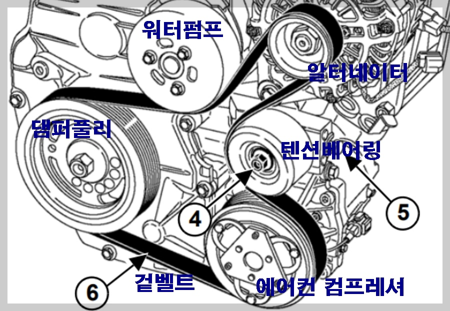 기아 K5 디젤차 엔진소음 겉벨트세트 교체비용 (댐퍼풀리 텐셔너 어셈블리 )