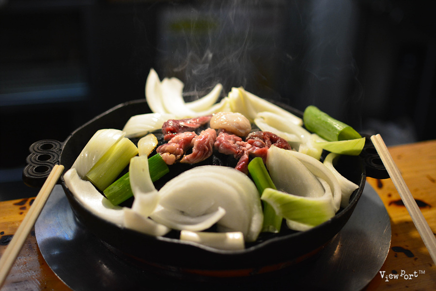 옛 몽골 군대에 투구 모양에서 유래된 양고기구이 징기스칸입니다.