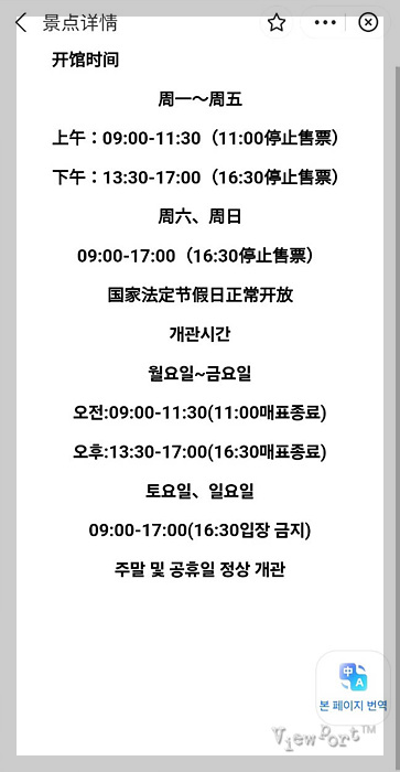 3. 중간 점심시간 (11시 30분부터 13시 30분까지)에는 입장이 안 되니 방문시 시간을 확인해 보세요.