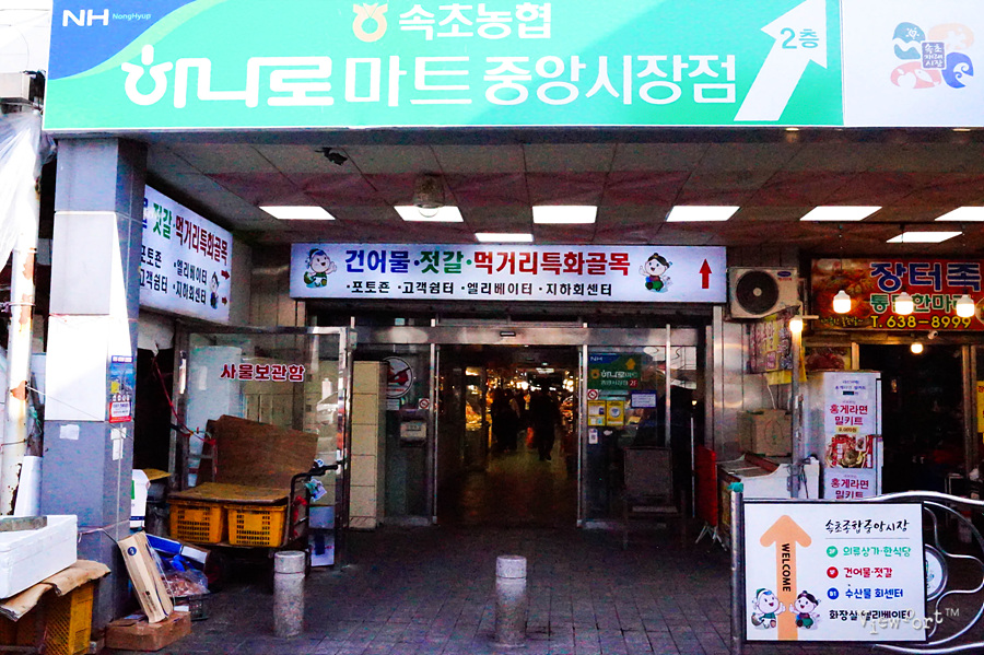 속초 시내에서 리조트로 올라가기 전에, 먹거리들과 맥주 한잔 같이 할 수 있는 안주거리를 찾아 시장에 들렀습니다.