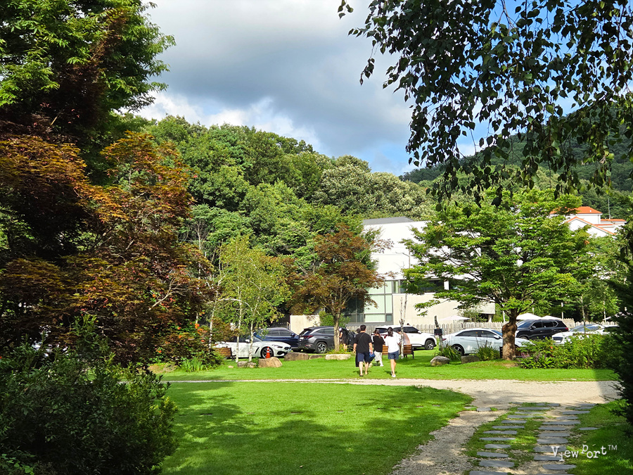 카페에서 차를 마실 수도 있고, 잔디 정원에서 오랜만에 눈을 시원하게 할 수 있었거든요