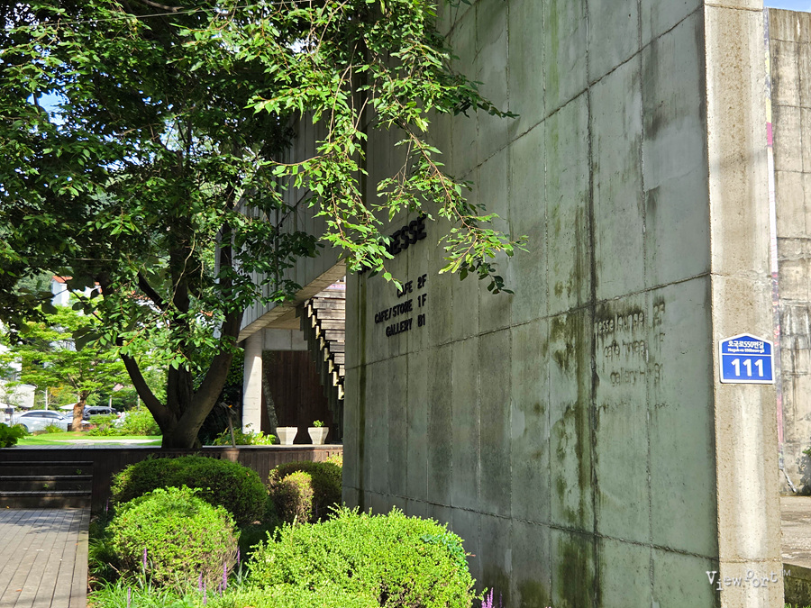 카페로 쓰고 있는 건물은 돌출 콘크리트 형태의 건물인데 오랜 시간을 녹여낸듯 한 느낌이 듭니다