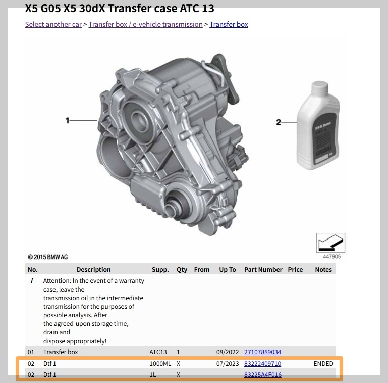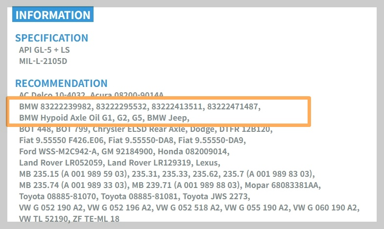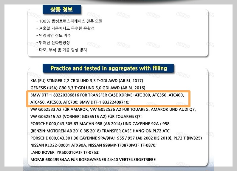 ▲ BMW 트랜스퍼오일 TC오일 규격 확인방법