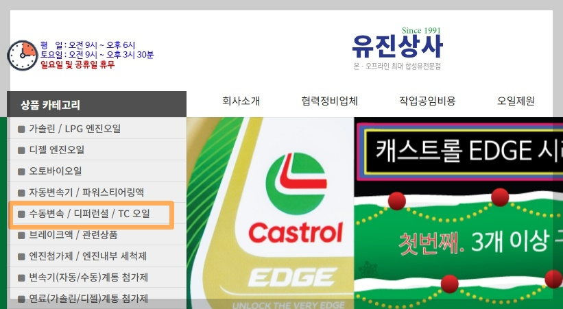 이제 오일 규격을 확인했으니, 오일 구입해 보죠. 오일은 파트존과 차량오일 도매로 유명한 유진상사를 들어가보겠습니다.