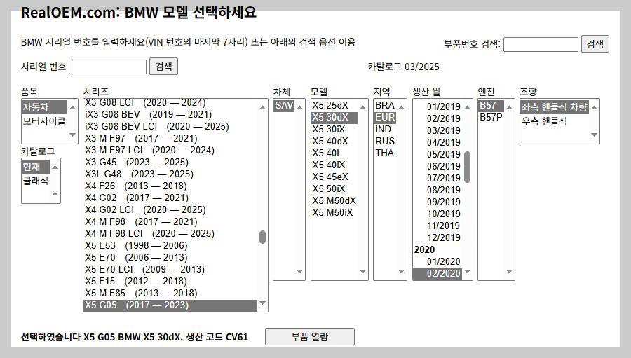 먼저 차량의 적정 오일 규격을 확인하기 위해 BME RealOEM 사이트에 들어가 보겠습니다.