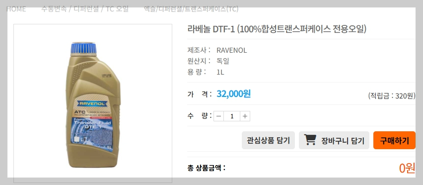 1. TC 오일 : 라베놀 DTF-1 ( Ravenol Transfer Fluid DTF-1 ) 1통 - 32,000원