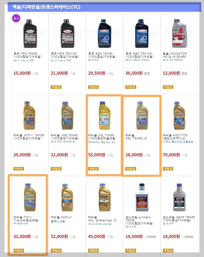 디퍼런셜오일 TC오일규격 확인방법 유진상사 파트존