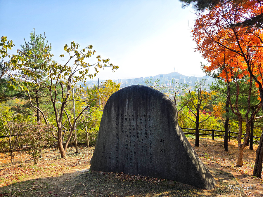 윤동주 시인의 대표작품인 서시가 적혀 있는 기념비와 저 멀리 서울 풍경을 조망할 수 있는 곳으로 특히 저녁 야경이 예쁘다고 해요