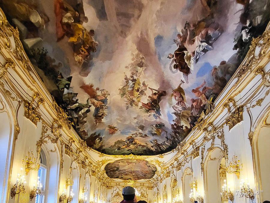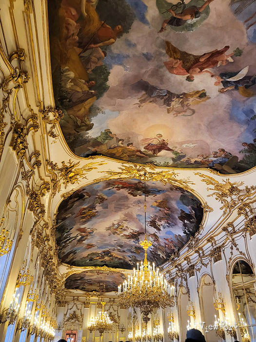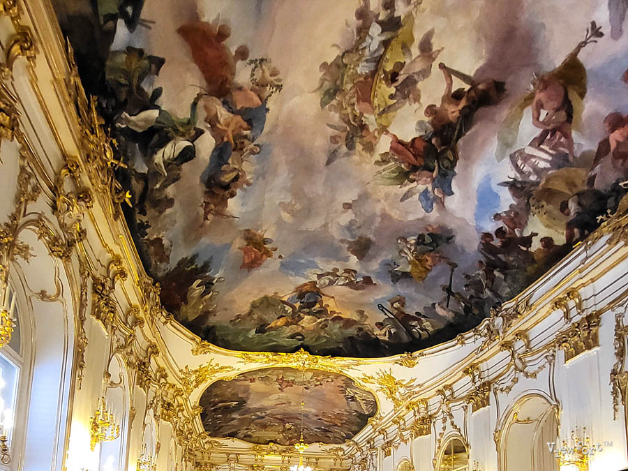천지창조를 연상케하는 화려하고 아름다운 천정화를 비롯해서 주변 금빛 그리고 아이보리빛 벽과 장식들을 보면 당시 오스트리아의 위세가 얼마나 대단했는지 짐작이 갑니다.