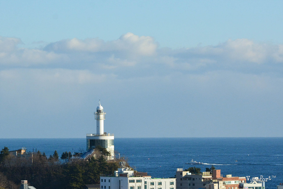 청초호쪽으로는 왼편으로 영금정이 보이고 그 너머로 속초 등대가 보입니다