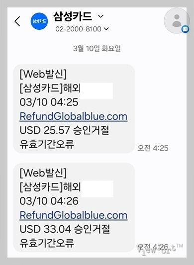 해외여행 텍스리펀 승인거절 유효기간오류 삼성카드