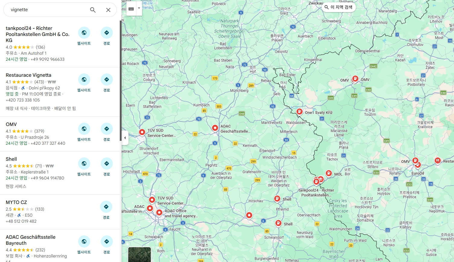 독일 뉘른베르크 (A6) - 체코 프라하 가는길 (E50) 비넷구매처